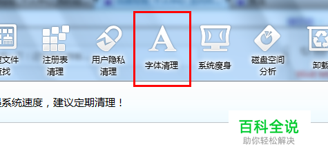 打开清理大师之后,在上方的功能组件中会有一个字体清理的功能,用鼠标单击一下切换到其状态。