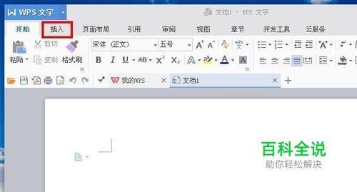 使用WPS Office2017版软件打开word文档,然后点击word文档窗口左上方的“插入”按钮。