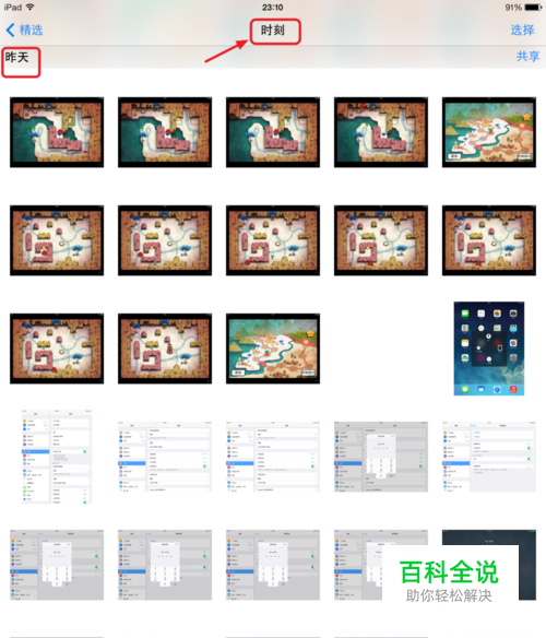 首先打开ipad中的【照片】,在【时刻】下,可以看到不同时间拍摄或截屏保存的图片