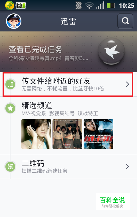 手机迅雷不仅可以下载文件,也可以看视频,还可以传送文件,在这里简单的介绍一下,手机迅雷如何传送文件