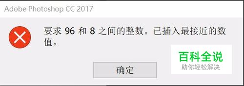 打开PS后无法进行操作,提示“要求96和8之间的整数,已插入最接近的数值”。下面就说一下这个问题的解决办法。