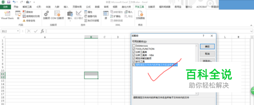 弹出对话框后我们选择浏览,找到我们需要加载的excel加载宏,然后单击确定,即可加载完成,如下图所示。