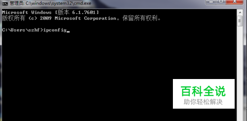 在打开的“命令提示框”输入命名“ipconfig”,然后回车。