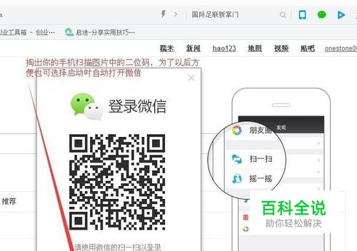 在打开的登陆界面有个二维码。需要小伙儿们,用自己的手机微信打开扫一扫进行扫描。