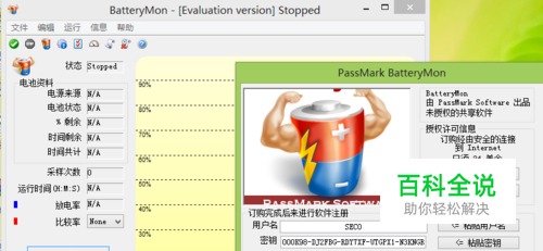 运行BatteryMon软件。 示例软件:BatteryMon2.1cn.exe。 用户名:SECO。 秘 钥:000K98-DJ2FBG-RDY7XF-UTGPX1-N3KNGR-4PVUK3-P037DN。