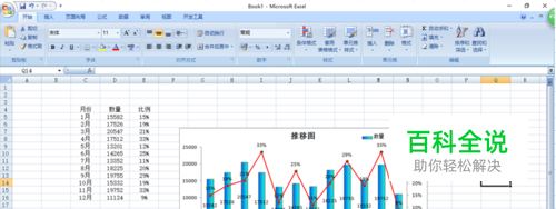 我们做出来的推移图(柱状图+折线图)一般默认格式如图,我们需要做进一步的美化。