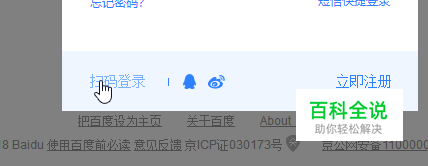 第三种方式是扫码登录。点击左下角,用手机百度扫描二维码即可立即登录,具有高效,快捷,安全的特点。同时支持QQ,腾讯微博账号的方式登陆。