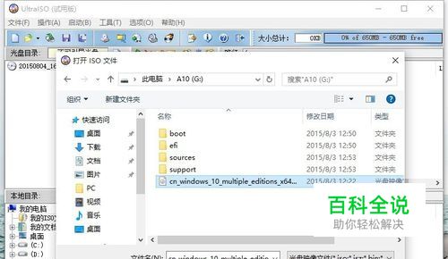 方法1:把win10的镜像文件写入到U盘安装。 注意:需确保u盘有足够的空间放文件,U盘会被格式化,请提前备份好资料 1.下载上面工具里的软碟通并安装,打开并点击试用,进入软件界面。 2.单击左上角【文件】-【打开】--(选择下载好的WIN10镜像)--单击【打开】