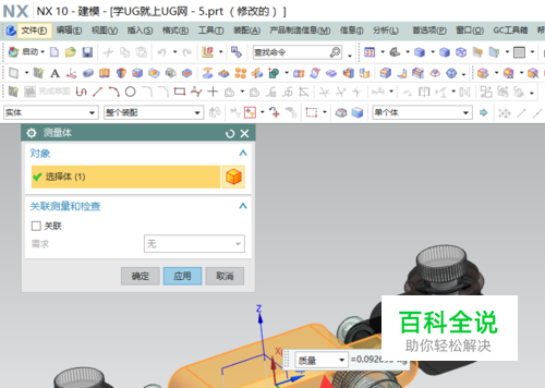 测量体是指测得实体的体积、面积、重量等,其命令在分析菜单下;(在对产品进行测量体前,一定要先指定其密度)