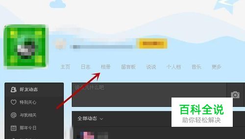 首先我们登录QQ空间,点击导航中的相册选项,如图所示。