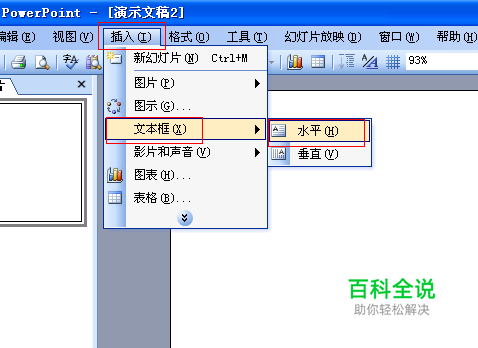 点击菜单“插入”-----“文本框”-----“水平”