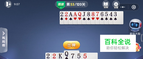 最后将7打出去,普通53关就通过了。