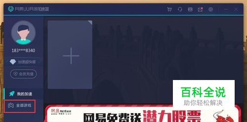 这里需要通过安装网络加速器软件来实现该功能,以网易UU加速器软件为例,打开网易UU软件主页面,点击页面左侧“全部游戏”选项。