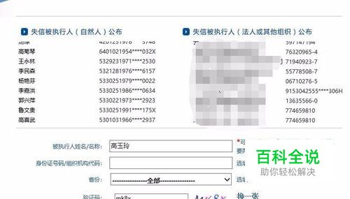 输入验证码后点击查询,就可以在下方查询到失信被执行人的相关名单了。
