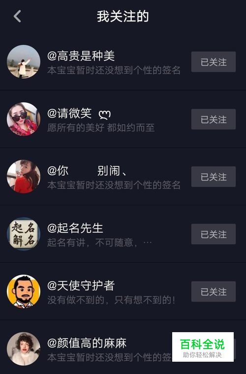 在这里可以看到你若关注的人,都显示已关注,如下图。