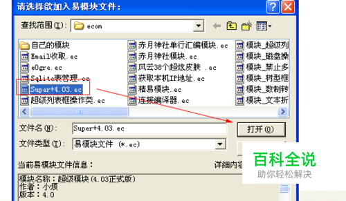 依次左键点击下图的: 一、个作夹(没有点击的情况下才需要点击) 二、程序 三、模块应用 在浏览窗口找到你下载存放的超级模块位置。点击打开“超级模块” 在模块下面便会多出一个“超级模块”。