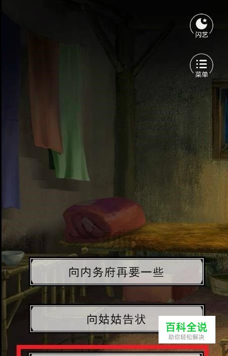 接着选择向内务府提前告发恶女,这样就能成功抓住恶女,从而获得皇后的好感度,其实这里也是为后边的剧情做铺垫的。