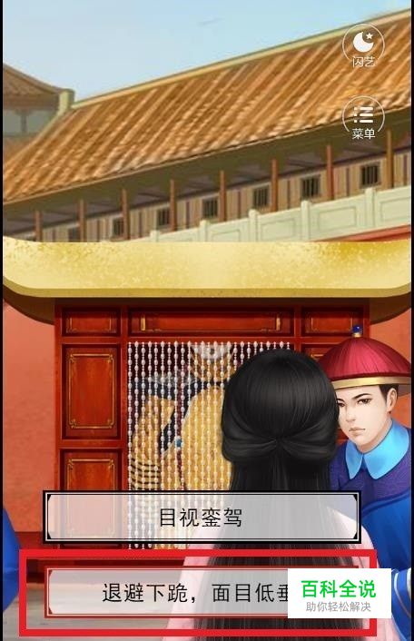 进入游戏,第一个就是遇到皇上,这个是选择第二个选项退避下跪,面目低垂,选其他都是死。