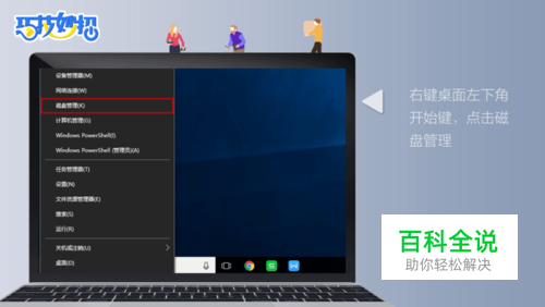 右键点击桌面左下角的开始键,点击“磁盘管理”