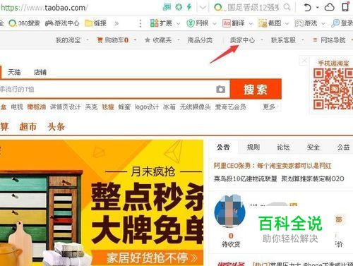 打开淘宝官网,登录淘宝账号,进入到卖家中心。