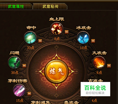 武意潜灵:武意升级能够获得武意潜灵,通关练气随机分配至武意随机一点属性,武意潜灵只能够通关武意升级获得。