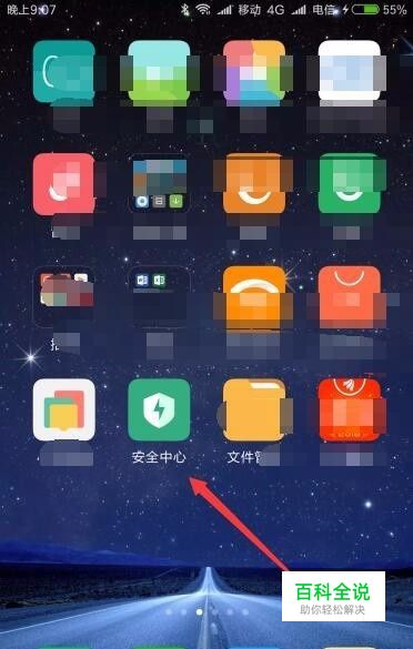 在手机上滑动屏幕,找到“安全中心”的图标,点击后打开手机的安全中心页面