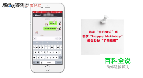 发送“生日快乐”或英文“happy birthday”就会自动“下蛋糕雨”。