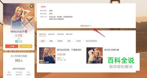 在最下方可以看到包括这个模特的累计评价(与淘宝购物的好评率相似)历史作品,粉丝分析,服务详情等数据的分析结果