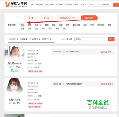 进入淘女郎首页后,选择何使的“垂直领域”,找到符合条件的人选,单击其头像进入模特的主页,