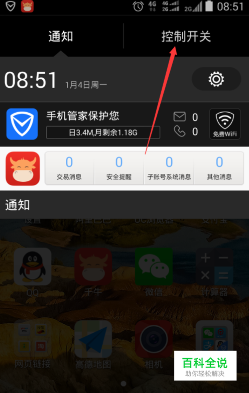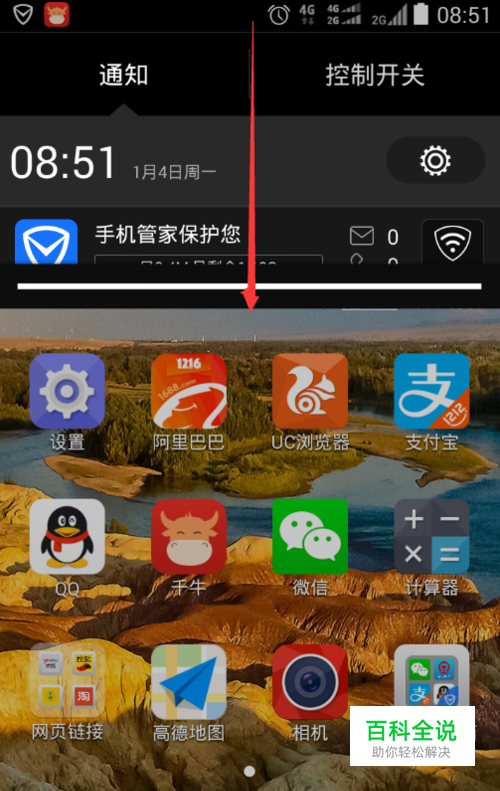 在手机最上方向下滑动。
