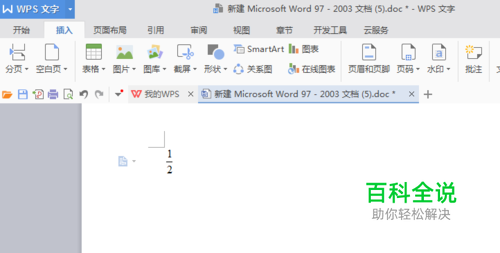 退出公式编辑器后,在word文档中就插入一个正确的二分之一分数。