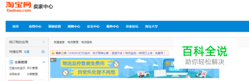 在用软件打单之前要先到淘宝店铺去申请开通,登录淘宝卖家中心,找到左侧菜单中的【物流管理】→点击【物流服务】,找到电子面单运营商申请页面,如下