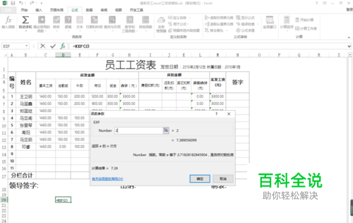 插入exp函数,函数的格式是=Exp( number ),number参数是底数e的指数。