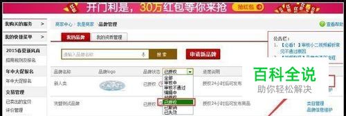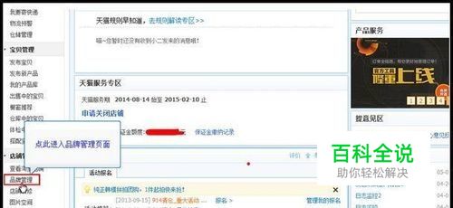 首先点击登陆店铺后台,点击商家中心左侧菜单栏中的店铺管理下面的品牌管理模块