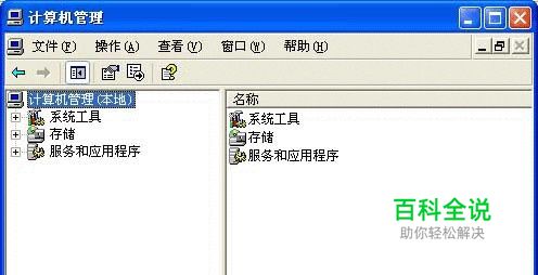 若是在XP中,则在桌面上的“我的电脑”图标上面点击右键,选择“管理”。即会弹出“计算机管理”窗口。