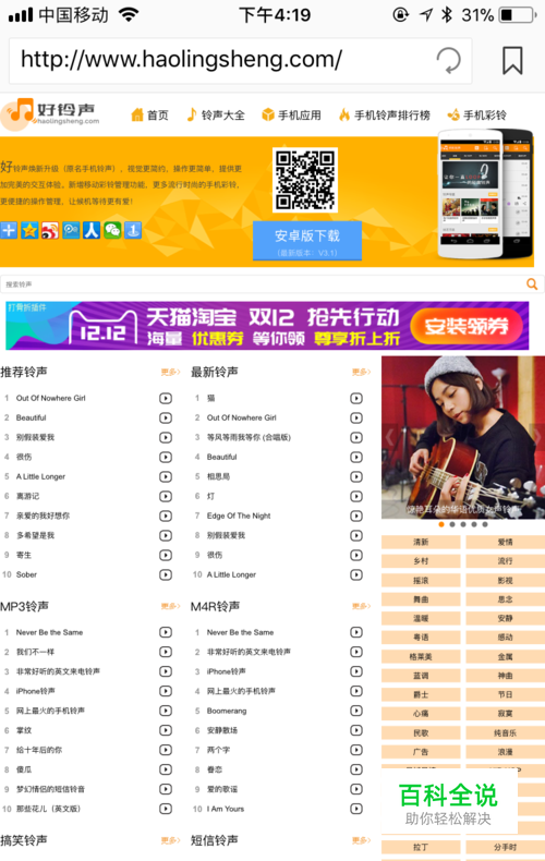 打开Documents,点击右下方的safari图标,在搜索框中输入你喜欢的铃声网站 (推荐www,haolingsheng.com) 搜索自己喜欢的铃声(我用的是we are young特别好听)