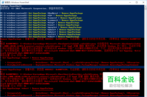 要卸载Xbox,输入 Get-AppxPackage *xbox* | Remove-AppxPackage