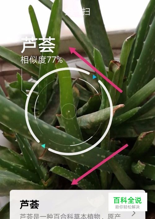 扫描完成,显示是芦荟,与芦荟的相似度高达百分七十七。然后点击下面的“芦荟”的词条,了解更多的信息。