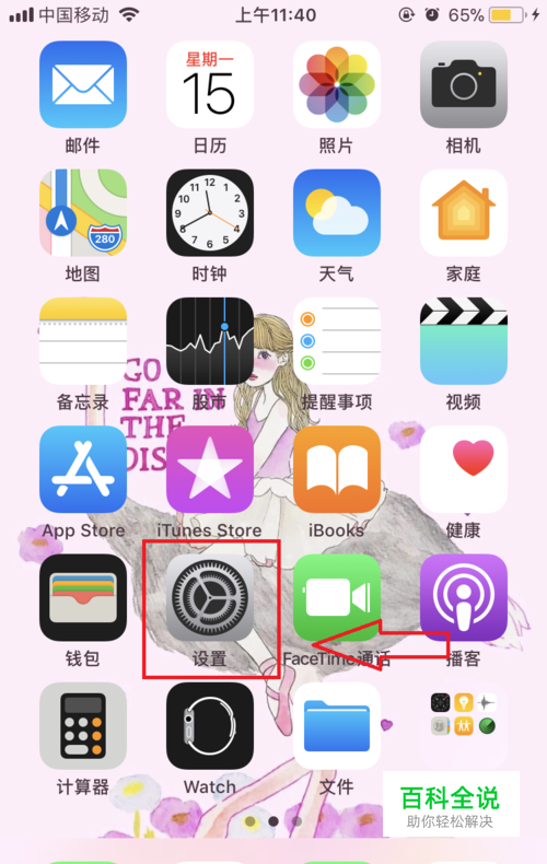 打开你的苹果手机,点击屏幕-设置-的图标。
