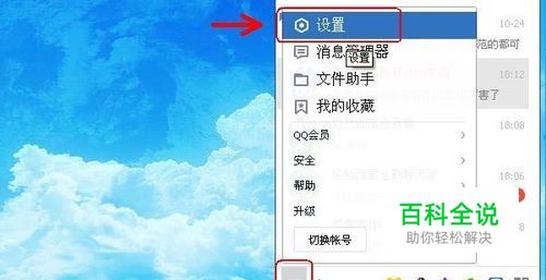解除对联系人的屏蔽: 在QQ主面板上点击设置进入。