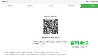 支付认证费用:直接扫二维码支付300元认证费(每年需向微信团队缴纳300元的认证费用),之后腾讯认证第三方会给运营者账户里转入小额汇款并致电运营着(请保持电话畅通),需运营者将小额汇款截图发送到指定QQ或邮箱内,完成认证。