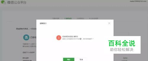 信息填写好以后,勾选“我同意并遵守《微信公众平台服务协议》”,并点击“注册”按钮。 点击注册以后,进入了“选择类型”页面,选择服务号的注册地,要按照实际勾选。 完成以后点击“确定”。