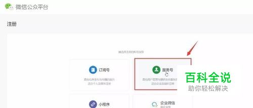 进入一个类型选择页面,选择注册公众号的类型,点击“服务号”。