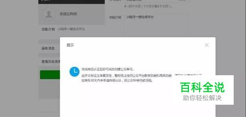完成以后会弹出一个“完成微信认证后即可成功创建公众号”的页面,如果30天内未申请微信认证,公众账号就会被注销。
