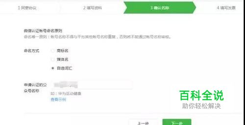 信息填写完成后,会进入确认认证的公众号名称的页面。