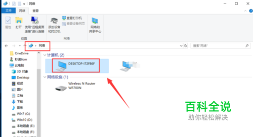 用网线直连两台电脑,或者登陆同一网络,在另一台电脑的网络就可以看到你共享的电脑了,如下图所示是
