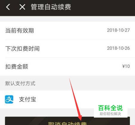 然后来到新界面,看到会员有效期及自动支付时间,下方还有扣费金额,最下方则为取消按钮,点击。