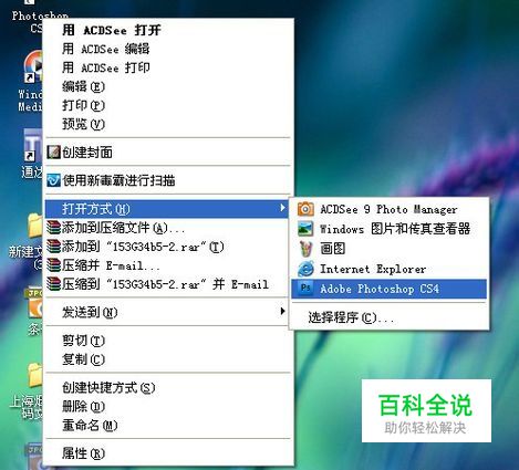 如果照片已经出来了,我们只能用图像处理工具修图了,我感觉还是Photoshop的印章修图最好,我们右击桌面上要修改的图片,右击选择用PS打开,如图。