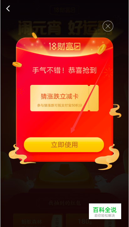 参加活动抽奖得到猜涨跌立减卡后,可以直接点击立即使用,如下图所示。
