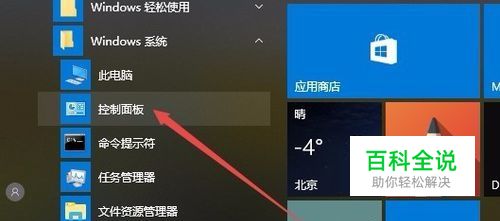 在Windows10系统桌面,依次点击“开始/Windows系统/控制面板”菜单项。